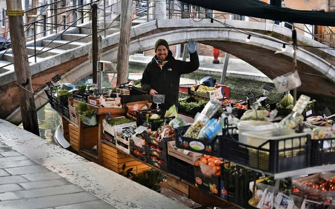 Dort, unter dem niedrigen Bogen der Brücke, liegt er. Sein Boot ist kein Gefährt der Eile, sondern ein schwimmender Garten. Die Kisten sind gefüllt mit Farben, die in diesem gedämpften Licht wie kleine, leuchtende Geheimnisse wirken. Das tiefe Rot der Tomaten, das satte Orange der Mandarinen, das lebendige Grün der Salate – sie sind die einzigen lauten Töne in dieser stillen Szene.
